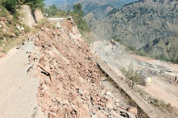 Dalwass retaining wall collapses, Sgr-Jmu NH traffic disrupted