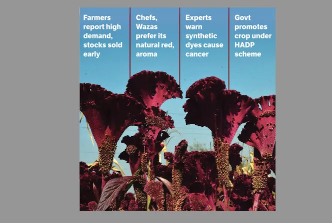 The Kashmiri cockscomb, locally known as Mawal, has staged a remarkable comeback as people turn to natural food colourants, reviving an ingredient and an entire cultural legacy.